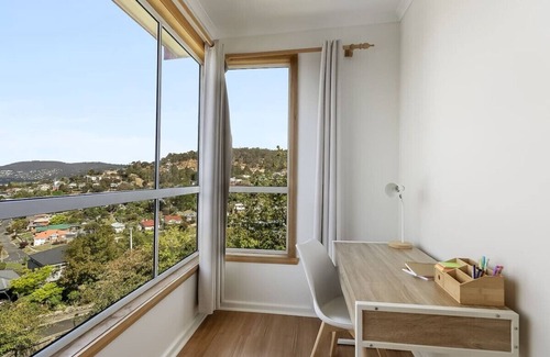 The living area has stunning views of the River Derwent, Hobart City & Tasman Birdge. A heat pump and wood-fire ensure you stay toasty warm on those cooler nights. Complimentary high speed internet services the property.