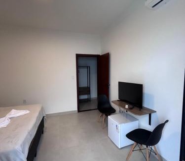 Hospedaria Casa Branca offers accommodations in Porto Seguro, 1.3 miles from Taperapua Beach and 1.2 miles from Arena Axé Moi Bar. There's a private entrance at the bed and breakfast for the convenience of those who stay. The bed and breakfast provides rooms with air conditioning, free private parking, and free Wifi. All units are equipped with a flat-screen TV and a fully equipped kitchen with kitchenware. All rooms are fitted with a pool with a view featuring pool views. At the bed and breakfast, all units are fitted with bed linen and towels. Guests can also relax in the garden. Memorial of Discovery is 3.9 miles from the bed and breakfast, while Porto Seguro Bus Station is 5.4 miles from the property. Porto Seguro Airport is 5.6 miles away, and the property offers a paid airport shuttle service.