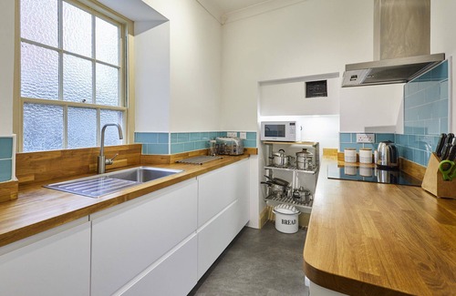 The galley kitchen has been given a modern revamp and is fully equipped with appliances and cookware so you can prepare meals easily during your stay.