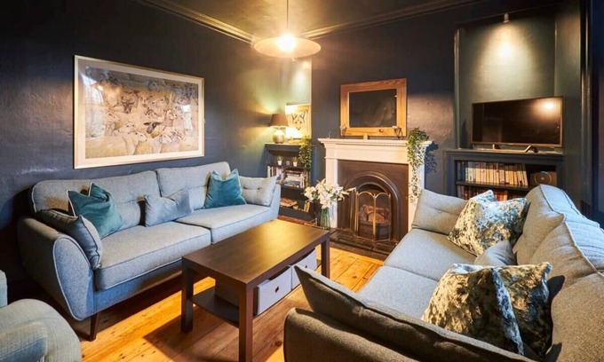 You’ll find original features throughout this delightful home, with a black iron fireplace, wooden flooring, and high ceilings. Light floods in to the the relaxing and cosy living room, where you can sit back and relax in one of the two comfy sofas or matching armchair. Turn on the flat screen TV to enjoy Freeview and streaming apps.