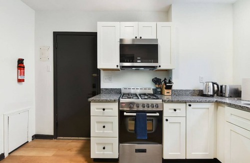 Located right in the heart of Lawrenceville on Butler St you can't beat this location! Our 1st floor apartment is tastefully furnished and stocked for short term and longer term stays - perfect for living and working, or quick getaways! Our well appointed kitchen is great for cooking, our two desks are perfect for two work from home travelers, our cozy bedroom invites you to sleep in, and the living room's couch and smart TV invite you to relax!