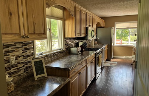 We designed and furnished this home so that it will be ideal for guests who need to work remotely (4 desks) and guests who want to cook more elaborate meals and spend time together enjoying the home and property.