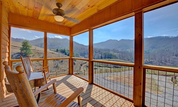 The cabin's fully equipped kitchen allows you the ease of cooking homestyle meals. Cozy up in the living room and watch movies on the flat-screen TV with satellite service. Take advantage of the mountain weather and enjoy the gas grill and incredible mountain views from the screened porch.