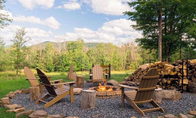 Relax and savor your coffee on the deck while the sun comes up over Hunter, just a few minutes away from skiing at Windham (7min) and Hunter (8min) with breathtaking mountain vistas. End the day with pals by the fire pit for stargazing and s'mores. Indulge in the hot tub on the secluded deck with those mountain views. Have a blast all year round with hiking, swimming, kayaking, and fishing at nearby Colgate and Silver Lake. Fantastic dining and shopping choices await in Hunter, Windham.