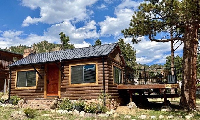 Adventure awaits! This is a one of a kind tranquil mountain retreat! Perfect getaway to relax and leave it all behind! Completely remodeled, all brand new, and finished out in a cozy mountain feel including a gas fireplace. Full kitchen finished with granite counter tops. Amazing views of Longs Peak, and white capped mountains! Large deck has expansive mountain views, a gas fire pit, and great wildlife viewing. The cabin is located in one of the best areas of town. It is conveniently located just 2 miles to downtown Estes Park, and 2 miles to the Beaver Meadows National Park Entrance. It is close to some of the most popular restaurants in Estes, and has a small grocery store just a couple minutes away. You can go into town if you want, or can avoid the downtown traffic with everything you need just minutes away!