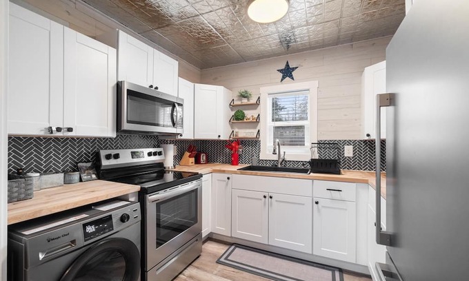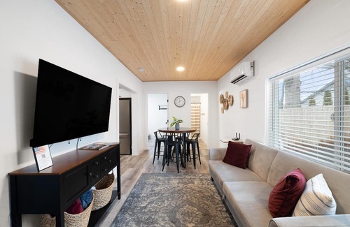 Cozy up with friends and family at this charming home during your next visit to North Idaho. "Little America" has everything you'll need to enjoy a relaxing getaway. The home offers 2 bedrooms, a fully stocked kitchen, full bathroom, living and dining areas. Each room has a queen size bed, and the living room sofa pulls out to accommodate any additional guests. Outside you can make memories while bundled up around the gas fire pit and your Tesla will stay charged as you explore the stunning PNW!