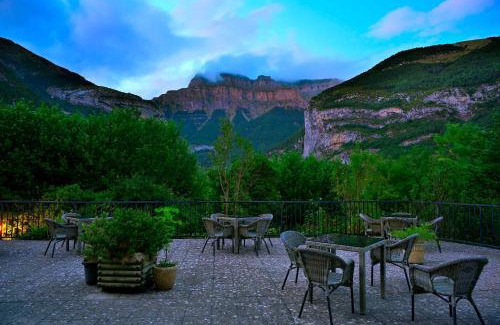 The traditional stone building of Hotel Abetos is situated by the entrance to the Ordesa National Park and Monte Perdido. The hotel's large grounds offer panoramic views of the surrounding area. The charming rooms at Abetos all have a private bathroom equipped with a bathtub, modern shower and hairdryer. Some rooms also feature a balcony. There is a snack bar serving light refreshments as well as a terrace bar with wonderful views. There is also a cozy TV lounge with wooden beams and a fireplace where guests can relax. The Abetos Hotel can be found 650 ft from the center of the Pyrenean village of Torla, at the entrance to the Ordessa Valley. There is extensive free private parking available on-site, while the bus stop to Ordesa is just feet away.