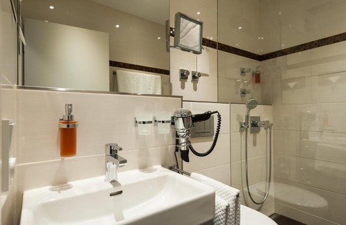 Food & DrinkBottle of water, Minibar, Wine/ChampagneBathroomFree toiletries, Walk-in shower, Private bathroom, Shower, Body soap, Toilet paper, Shampoo, Hairdryer, Shower cap, Toilet, TowelsGeneralCarpeted, Trash cans, Key card access, Heating, Safe, Fan, SoundproofMedia & TechnologyTelephone, Radio, Cable channels, TV, Flat-screen TV, Satellite channelsServicesWake-up service/Alarm clockLiving AreaDeskBedroomLinens, Wardrobe or closetViewCity viewAccessibilityAccessible by elevator, Upper floors accessible by elevatorRoom AmenitiesSocket near the bed, Feather pillowLayoutWindow |
