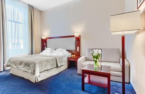 Atrium Hotel is located in the center of Szczecin, 1.2 miles from the Old City Town Hall. It offers rooms with bathrooms, free high-speed WiFi, satellite TV and seating areas. The Atrium is located close to many different shops, cafeterias, theaters and museums, just 0.7 mile from the Galaxy Shopping Center. Individually decorated rooms come with a safety deposit box, air-conditioning and a mini-bar. It features an elevator, a 24/7 reception desk, and a monitored car park surrounding the hotel. After a long day, you can relax in a sauna. Please note that the Atrium Hotel restaurant is currently closed. The bar and breakfast buffet remain available without any changes.