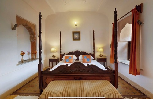 Hotel Castle Bijaipur offers 30 air-conditioned accommodations with complimentary bottled water and ceiling fans. Accommodations offer separate sitting areas. Beds feature premium bedding. Bathrooms include complimentary toiletries and toothbrushes and toothpaste. Housekeeping is provided daily.