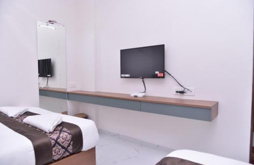 Located in Shirdi, a 6-minute walk from Saibaba Temple, Hotel D Square has accommodations with a garden, free private parking, a terrace and a restaurant. This 4-star hotel has air-conditioned rooms with a private bathroom. The property provides a 24-hour front desk, airport transportation, room service and free WiFi throughout the property. At the hotel, rooms come with a desk. The rooms in Hotel D Square are equipped with a flat-screen TV and free toiletries. À la carte and continental breakfast options are available at the accommodation. Hotel D Square has a playground. Popular points of interest near the hotel include Shri Adinath Shewtamber Jain Mandir, Sai Teerth Spiritual Theme Park and Wet N Joy Water Park. Shirdi Airport is 8.7 miles from the property.