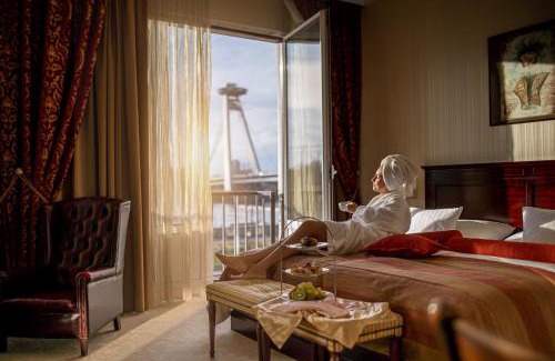 Hotel Devin is located in the historic center of Bratislava, on the banks of the Danube River. Rooms overlook the Danube or the Old Town, the restaurant serves gourmet cuisine and it has a wellness center and a squash court. The air-conditioned rooms come with free coffee and tea making facilities, a flat-screen TV, a laptop-size safe and free wired and Wi-Fi internet access. Double rooms overlook the Danube or the Old Town, suites overlook the Danube and single rooms offer views of the Old Town. An internet corner is also available for free in the hotel. In Café Devín you can enjoy traditional cuisine, delicious drinks or desserts from our own pastry shop. The on-site wellness center is accessible for a fee and has a heated indoor pool, a Finnish sauna and a steam bath. Massages and a squash court are offered as well. The National Gallery is only 164 feet away and St. Martin's Cathedral is 1312 feet away from Hotel Devin. Only 1.2 mi from the hotel you can find the Incheba Exhibition Center.