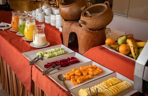 Hotel Hacienda Puno is 1 block from the Main Square and the Cathedral and offers free Wi-Fi and free private parking. It also has a sky room restaurant with panoramic views of Titicaca lake, which is a 5-minute drive away. Rooms at Hacienda Puno have 32" plasma TV with satellite channels, a work desk and bathroom with marble fittings and toiletries. Hotel Hacienda Puno serves a large buffet breakfast consisting of fresh, local ingredients. Guests can also enjoy a fusion of regional and international dishes for lunch and dinner. Hotel Hacienda Puno offers 24-hour front desk assistance. At the tour desk, guests can arrange sightseeing tours to attractions such as the floating reed islands of the Uros or shuttles to Inca Manco Capac International Airport, which is 45 minutes away by car. There is a gift shop.