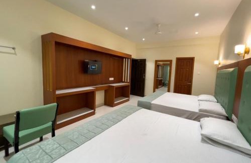 Located in Kanyakumari, within a 7-minute walk of Kanyakumari Beach and 21 miles of Padmanabhapuram Palace, Hotel Harshanaa Elite has accommodations with a terrace and free WiFi throughout the property as well as free private parking for guests who drive. This 3-star hotel offers room service and a 24-hour front desk. The property provides airport transportation, while a car rental service is also available. With a private bathroom equipped with a shower and free toiletries, rooms at the hotel also feature a city view. Thiruvananthapuram International Airport is 55 miles from the property.
