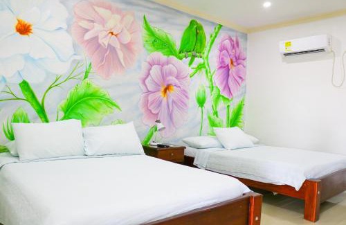 Featuring a terrace and a restaurant, Hotel Jardines Evans By GEH Suites is located in Mompos. With a garden, the 3-star inn has air-conditioned rooms with free WiFi, each with a private bathroom. The property provides a shared kitchen, room service and organizing tours for guests. All guest rooms in the inn are equipped with a flat-screen TV and free toiletries. An American breakfast is available at Hotel Jardines Evans By GEH Suites. The accommodation can conveniently provide information at the reception to help guests to get around the area. Corozal Airport is 83 miles away.