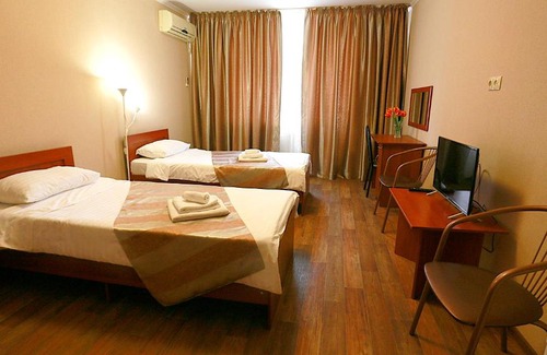This 17 Bedrooms Hotel is suitable for tourists and travelers. It has several amenities that would guarantee your comfort. These amenities include: Designated Smoking Area, Wheelchair Accessible, Internet, and several others. This is a good star rated property and has over 7 reviews with the average score of 5.5 . Coming to Krasnodar and needing a place to stay? Be it for work or for leisure, consider staying at this Hotel for your next visit, you will surely love it.