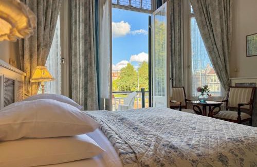 In the heart of Arnhem, next to Sonsbeekpark, lies the Art Nouveau-style Hotel Molendal. The heritage building dates back to the late 19th century and many of the original details have been preserved, ensuring the nostalgic character of our hotel. The monumental status of the building could however bring about some inconveniences for some. We do not have an elevator, air-conditioning or storage for your bikes. For this, we would like to refer you to the center-side of the central station, where you can park your bikes safely and without any costs for the first 24 hours. The station, just like the shops and restaurants, are a five-minute walk from our hotel.
