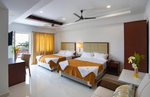 Located in Kanyakumari, 22 miles from Padmanabhapuram Palace, Hotel Viswa Grand has accommodations with a terrace, free private parking and a restaurant. This 3-star hotel offers a tour desk. The property provides room service, a 24-hour front desk and currency exchange for guests. At the hotel, rooms include a closet. Rooms come with air conditioning, a desk and a flat-screen TV, and certain accommodations at Hotel Viswa Grand have a balcony. The rooms have a safety deposit box. Thiruvananthapuram International Airport is 56 miles from the property, and the property offers a paid airport shuttle service.