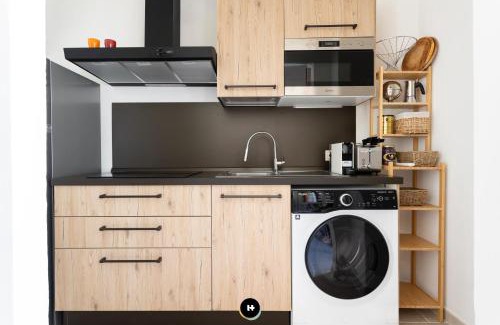 BathroomTowels, Shower, Toilet paper, Toilet, Hairdryer, BidetMedia & TechnologyFlat-screen TV, TV, Streaming service (like Netflix)GeneralAir conditioning, Key access, Trash cans, Tile/Marble floor, Ironing facilities, Heating, Mosquito netKitchenRefrigerator, Dining table, Cleaning products, Stovetop, Microwave, Kitchenette, Washing machine, Kitchen, Toaster, Kitchenware, Coffee machine, Wine glassesLiving AreaSitting area, Desk, Dining areaBedroomLinensBuilding CharacteristicsPrivate apartment in buildingRoom AmenitiesClothes rack, Feather pillow, Socket near the bed, Drying rack for clothing, Non-feather pillowPhysical distancingSingle-room AC for guest accommodation |