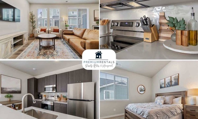 This Elegant two bedroom townhome is situated in a brand new fourplex. This brand new property has been carefully curated and furnished with travelers in mind. You have found the perfect place to relax and enjoy your vacation, with fluffy pillows, comfortable mattresses, and beautiful furnishings. Close to the Ford Idaho Center and shopping!