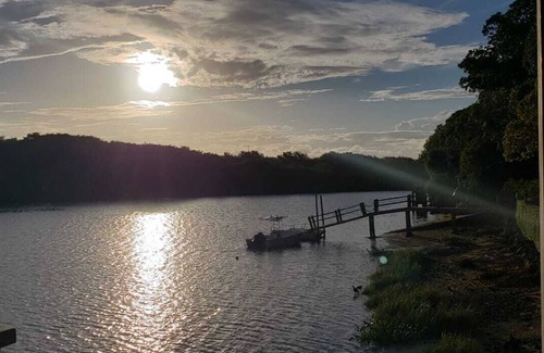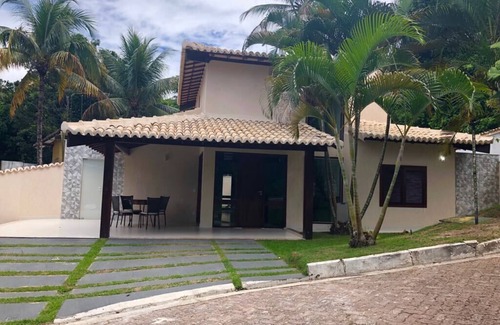 Excellent house in gated community, close to Porto Seguro international airport, quiet location, 24 hour security, 3 bedrooms with en suite and air conditioning and a mezzanine with bathroom and wall fan, complete leisure with swimming pool, sauna, 2 barbecue areas, Exit to the river, with marina and fishing area, sleeps up to 15 people, new furniture. Note: condo does not accept pets.