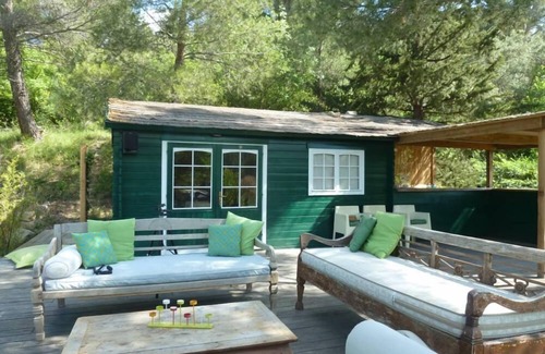 Pool with a cottage of 20 m2 in the trees (pool house) can accommodate 2-4 additional people. It is adjacent to a large and partly covered terrace with summer bar and fully equipped kitchen (refrigerator, ice maker, griddle ..)