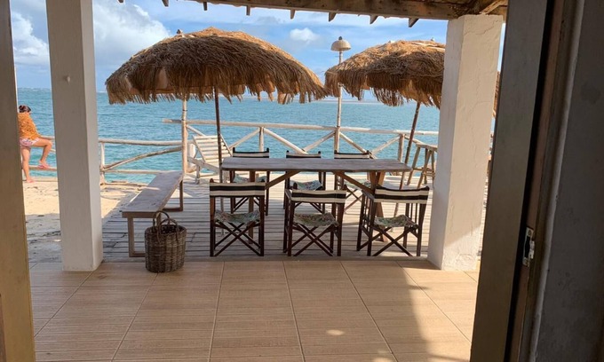 The best location on one of the most beautiful beaches in the world. Panoramic view of paradise islands and famous Mangue Seco beach. Next to bars and restaurants, boating points and near the beautiful tip of the bag. The sea bath is one of its main attractions. The house has no ceiling, air conditioning and electric shower. The sea is suitable for bathing with transparent waters in shades of green.