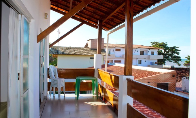 House with 2 suites, 3 bedrooms, bathroom. social, full kitchen with freezer and microwave, living room with large TV, balcony with sea view, aria with barbecue and beach shower.