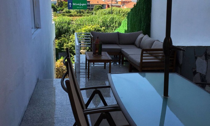 Individual house with several patios (equipped with tables, chairs, sofas), it is located in a very quiet and well located area: 1600 mt from the beach and more than 20 beaches by car, one step away from the guide lighthouse, near from the zoo, 6 min from the city center, very close to the shopping center and the port, good access to the motorway to get closer to Baiona, La Toja, Portugal (30km) and one hour from the Cathedral of Santiago.