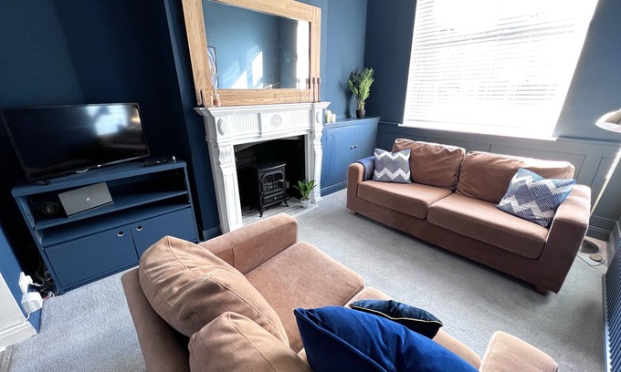 Elegant, spacious and comfortable 2 bedroom house. 15 minute walk from the Etihad, 8 minutes from the Velodrome and 5 minutes from the metro. With on street parking, double and a twin room. It's around 10 minutes taxi ride from the city centre.