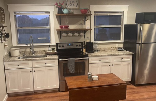 This charming open floor plan space is the perfect place to relax or work remotely. Located about 25 minutes east of Dallas, this space is close to the city but has a quiet country feel and can accommodate up to 4-6 people. This one of a kind nightly rental is a must stay for locals and travelers.