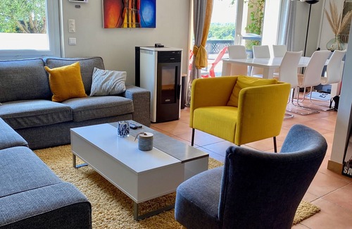 modern house of 115 m2 very quiet, not isolated, good exposure on 4 levels. Large terrace with veranda, outdoor area, barbecue charcoal and gas plancha, wifi.