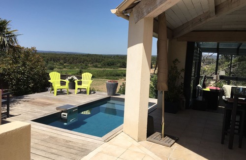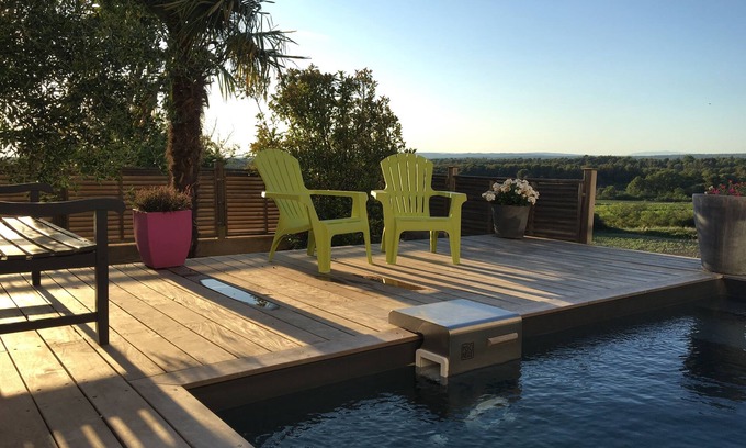 Nice small pool landscaped chairs and sun on a teak terrace with a splendid view of the Aix countryside. The few plants around will need some water during your stay! The house is not suitable for young children !!! the terraces are not totally closed !!