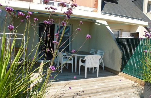 - south side, enclosed patio, wooden terrace (30 m2) with garden furniture, awning