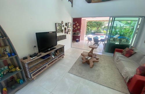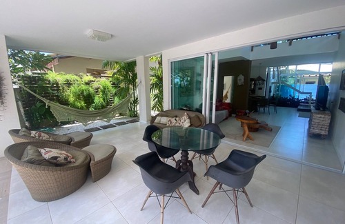 The house is located in a gated community, close to the beach, with excellent infrastructure, tennis court, poly sports court, soccer field, games room, playground, sand court, race track and motorized security. House with swimming pool, garage for 3 cars, gourmet space with barbecue and wood oven, balcony, room, living and dining rooms, 5 bedrooms (4suites), wc social, external bathroom, TV room in the upper part of the house, kitchen , pantry, service area.