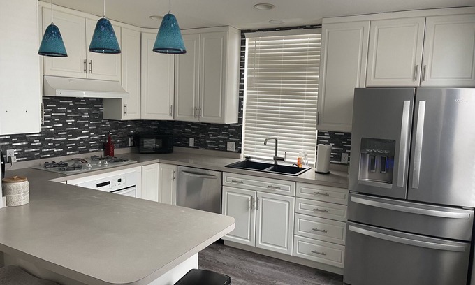 3000 sq ft home, 2 story. 3 bedrooms, 2 sofa sleepers, murphy bed & bunk bed. Sleeps 16. Includes Kitchen and Washer/Dryer on both levels. Wi-Fi, 4 TV's, Living room with electric fireplace. Freshly painted with new floors throughout, new beds and furniture. Fenced yard with BBQ. Private Parking.