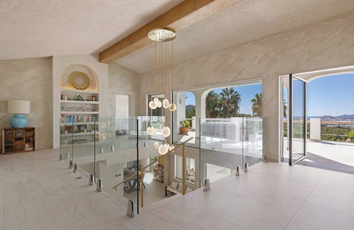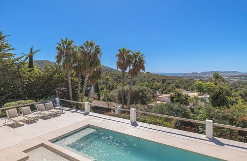 Welcome to the House of Dreams Ibiza. A beautifully designed luxury 450m2 ocean view villa on a hill overlooking Ibiza, in the gated community of Can Furnet with one of the best views on the island, across Dalt Vila/Ibiza Castle, Salinas and Formentera. The property was renovated in 2024 to the highest standard.
