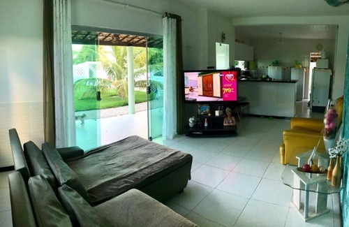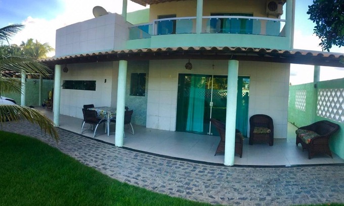 Beautiful house, overlooking the sea, well ventilated, with 4 bedrooms (2 c suites), all rooms with air conditioning, living room and large kitchen, balconies and room for pool. Furnished house is equipped for a complete stay, located in residential street, close to bars and restaurants, quiet and quiet beach for bath and family rest. We have supermarkets nearby