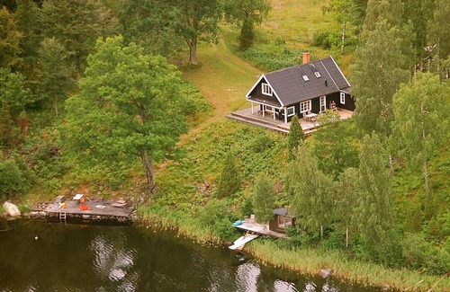30 m till sjön, roddbåtar, kanoter, segelbåt, bastu, öppen spis, 5 hektar trädgård,