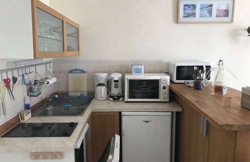 - a fitted kitchen with dishwasher, induction hob, fridge, microwave, coffee maker, toaster, barbecue, washing machine, large cupboards.