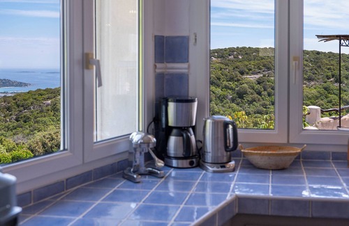 By parking your vehicle in a private car park, you descend a few steps to arrive on the main terrace where the panorama will welcome you before entering the 1st part composed of 1 bedroom, open kitchen, laundry room, bathroom, separate toilet, living room overlooking on a large terrace with outdoor table, plancha & loggia lounge, then continuing below, a few steps, you will arrive at the second part consisting of 2 bedrooms and 1 living room with bed, shower room wc, a little higher you access a large bedroom with private bathroom, a few steps further down you will find the pool terrace with its bar / BBQ or the deckchairs will allow you to relax facing the view of the 34,000 m2 of scrub, planted with cork oaks and olive trees, of the property & the Corsican coast. the 4 bedrooms are equipped for your comfort & air-conditioned (bed 180x200 or 90x200 according to your request and the living room with sleeping a sofa bed 140 x 195, bed and bath linen provided) for your well-being overlooking a sea view terrace ( except ch 1).
