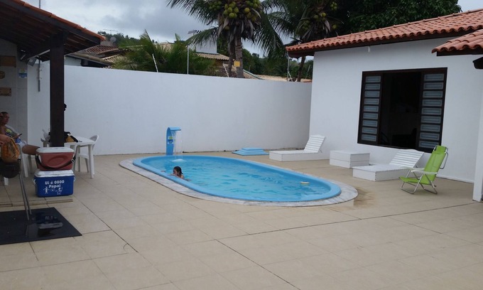 House located in the city of Barra de São Miguel with 03 bedrooms, 04 bathrooms, living and dining room, kitchen, laundry area, leisure area with swimming pool, barbecue and bathroom in the outdoor area, well ventilated, bright and cozy. Sleeps 9 people in beds, with space to accommodate 15 people with mattress on the floor. It has all the necessary utensils such as stove, refrigerator and television. The daily cleaning of the pool is included. You can get to the beach on foot. The city of Barra de São Miguel has all the structure of the church, banks, supermarkets, bakeries, pharmacies, restaurant, everything for your stay.