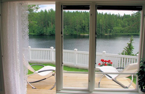 A beautiful house on a lakeside with wonderful views, privateboat, jetty and fishing opportunities!
