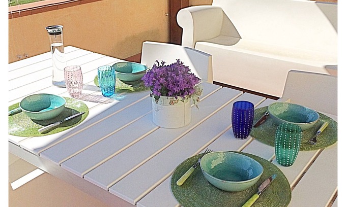 The house has a private garden and a spacious shaded terrace, furnished with a sofa and a big table, where you can spend pleasant moments in privacy. Inside the apartment is divided into living room, fully equipped kitchen, a double bedroom, a bedroom for children with two single beds and a bathroom; in the loft there is a sofa bed for one and a half. The house is modern and functional and is equipped with air conditioning, TV, dishwasher and washing machine.