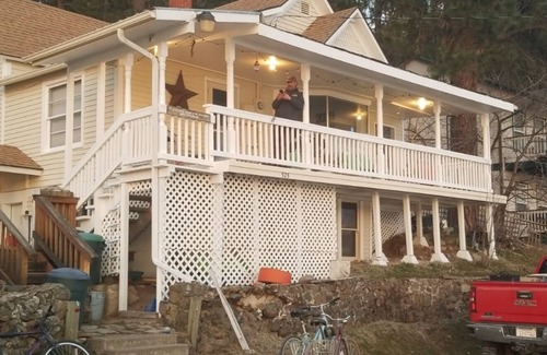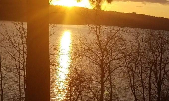 Access to Lake Coeur d'alene. Resting on the Trail of the Coeur d'alenes. Walking distance to down town and public beach and marine. Two bedrooms one bath upstairs, two bedrooms one bath downstairs. Beautiful deck giving views of the lake and every sunset. Private access to the Trail of the Coeur d'alenes and also to the shoreline of the lake. This is an older home with partial remodel but is clean and extremely comfortable.