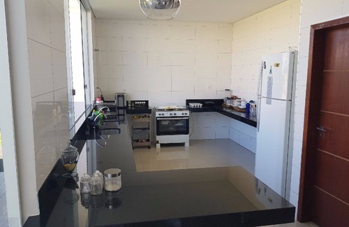The house is located in a residential condominium Outeiro de São Francisco located at the beginning of the north border of Porto Seguro, 1km from downtown and 500m from the beach. The house is cozy and airy, has a suite with air conditioning, television and closet, 2 bedrooms with fans, 1 bathroom, living room and dining room, full kitchen, laundry area with washing machine, large outdoor area with toilet and mobile barbecue. Garage for 4 cars. Wi Fi and cable TV (sky).