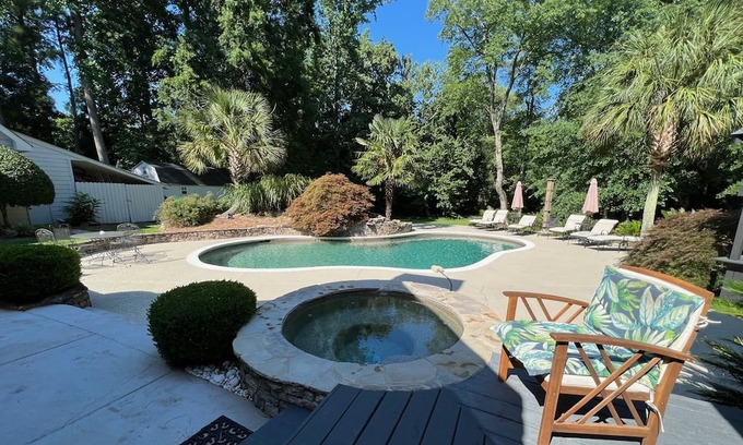 House with Pool, Hot Tub, Outdoor Fireplace with TV, able to sleep 18! is located in Griffin. House with Pool, Hot Tub, Outdoor Fireplace with TV, able to sleep 18! provides accommodation, featuring Air Conditioner, Security/Safety, Bedding/Linens, among other amenities. This House features Air Conditioner, Security/Safety, Bedding/Linens, to make your stay a comfortable one.