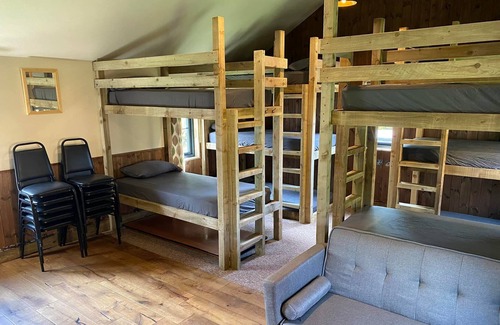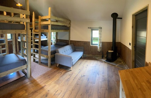 Lodges are all1 large room with access to the toilet and shower block onsite. Each lodge has 10 single bunks, chairs, large table and sofa. A small worktop including fridge, kettle & complementary tea & coffees. BBQ's are available on the veranda of each lodge for cooking, however most groups book into our cafe for meals.