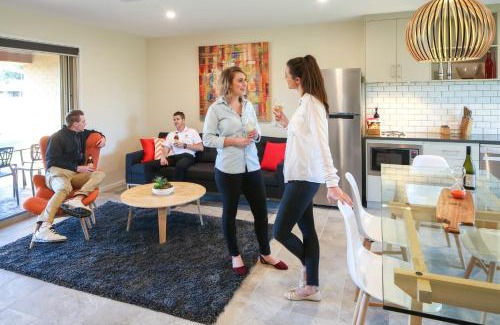 Howlong Golf Resort, offers luxury 2-bedroom apartments, just steps from the Murray River and 328 feet from the clubhouse, golf course and bowling greens. Guests can take in the pristine natural scenery, while enjoying all of the resort facilities. Guests enjoy free WiFi. Aside from world-class golfing, you can enjoy a round of tennis on the courts, make use of the children's playground. The pool. These self-contained apartments offer contemporary décor and modern amenities to ensure your relaxation and comfort. Every bedroom has an private bathroom. Each apartment also has its own outdoor deck complete with outdoor setting and wine barrel to sit around and enjoy a glass of local wine. The air-conditioned apartments offer a flat-screen TV, iPod docking station and coffee machine. They include a kitchen and mini-bar. Fairways Bistro is also open 7 days a week for dining. Howlong Golf Resort is just 10 minutes’ drive from the Murray River. It is 15 minutes’ drive from Rutherglen wineries. Albury Airport is 30 minutes’ away.