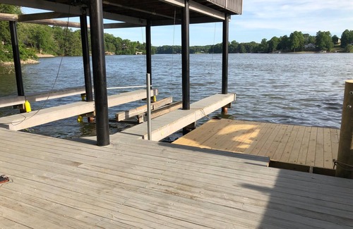 Located at the end of a Cul-de-sac in Goodview VA this home ("Happy Life") is a perfect compliment to our other VRBO rental "Happy Wife". The home is located on the main channel and we absolutely love to watch the boats go by all day long yet, because of the way the dock is situated relative to the channel there is plenty of safe space for swimming, canoeing, kayaking, and ... well exploring. The dock is huge with an upper level that is in the sun all day long and then a lower level with a 12' x 12' floating dock that is perfect for swimming and fishing. Standing in the main level it is possible to have a view of the lake over what is almost 180 degrees are one turns toward the kitchen with the many windows present. The entire lower level of the home has been recently finished and furnished to provide a wonderfully comfortable setting for a perfect getaway with friends and family.